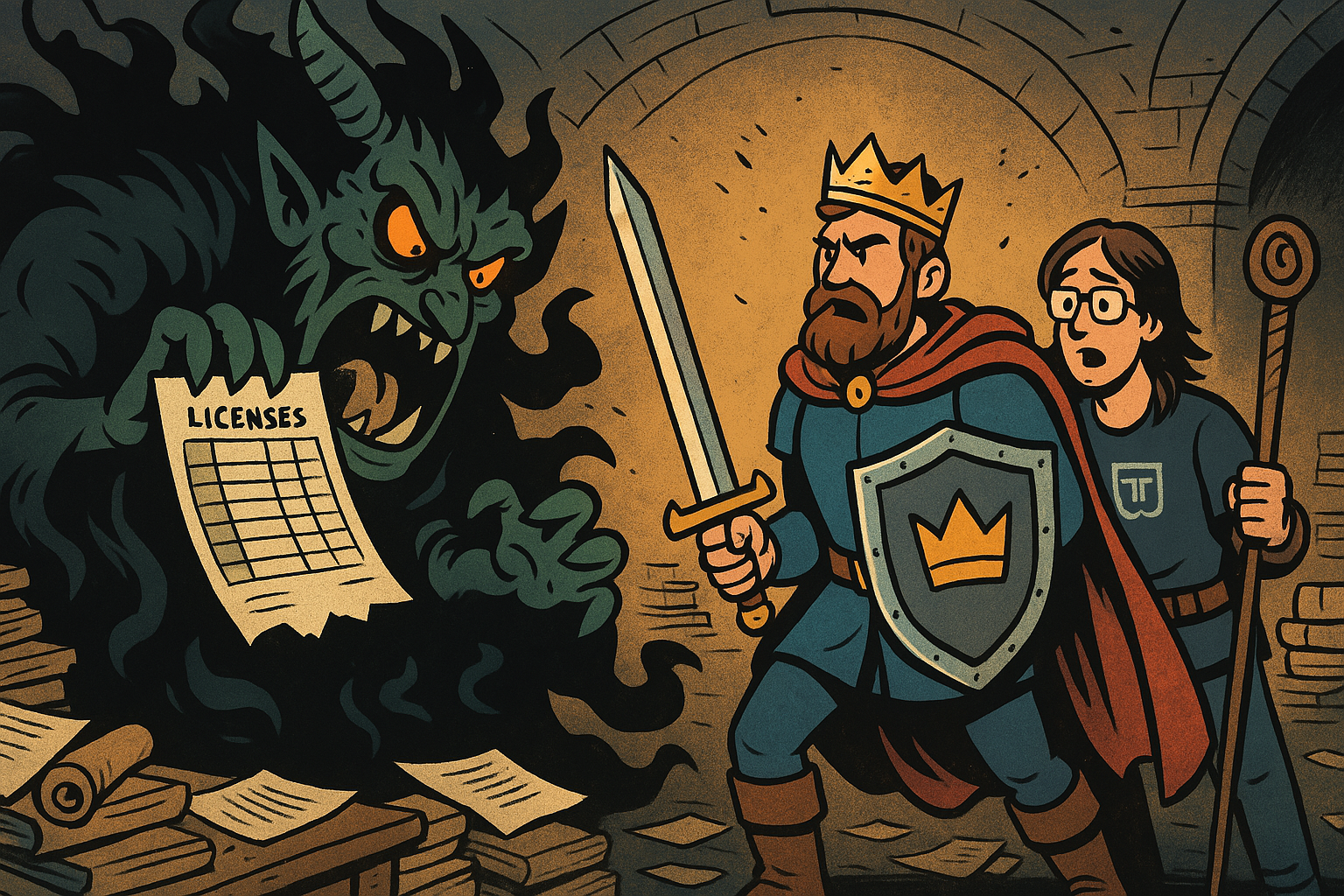 Gemeinsam reisten sie durch die Lizenzlande, eine Region voller widersprüchlicher Verträge, verstreuter Software-Inseln und sagenumwobener Tabellen, die niemand je komplett verstanden hatte. Überall hinterließen sie Ordnung, zentralisierten Lizenzen, befreiten die Mitarbeiter von doppelten Zugängen und schalteten die Macht der Automatisierung frei.